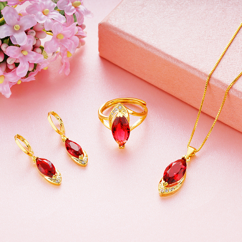 Gold Shop Same Style Vietnamese Sand Gold Inlaid Gem Necklace All-Match Women's Gem Ring Women's Earrings Set