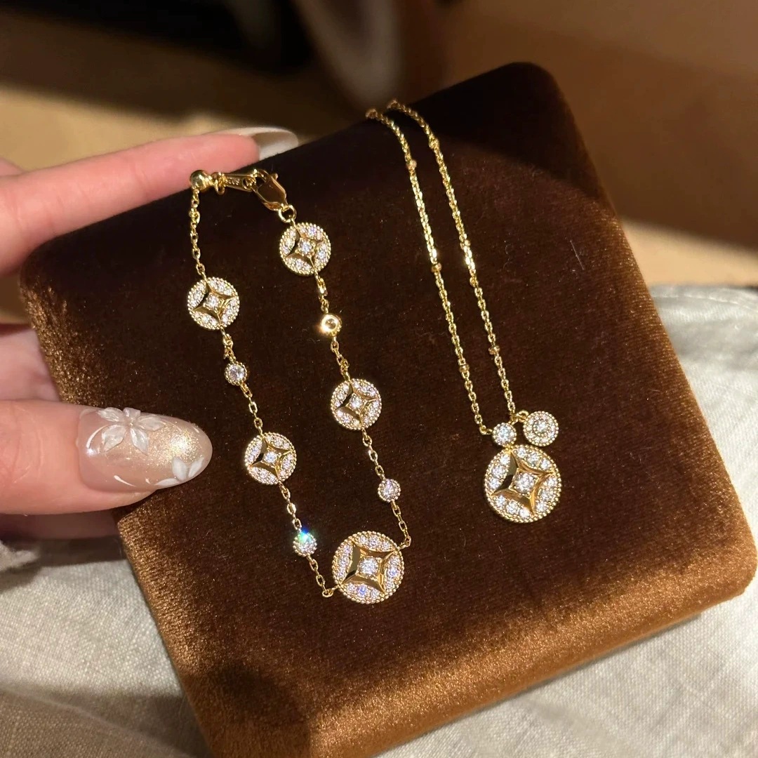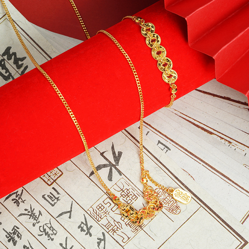 National Tide Vietnam Sand Gold Necklace Palace Style Ancient Method Flash Five Emperors Coin Bracelet suit Long-term No Falling First Jewelry