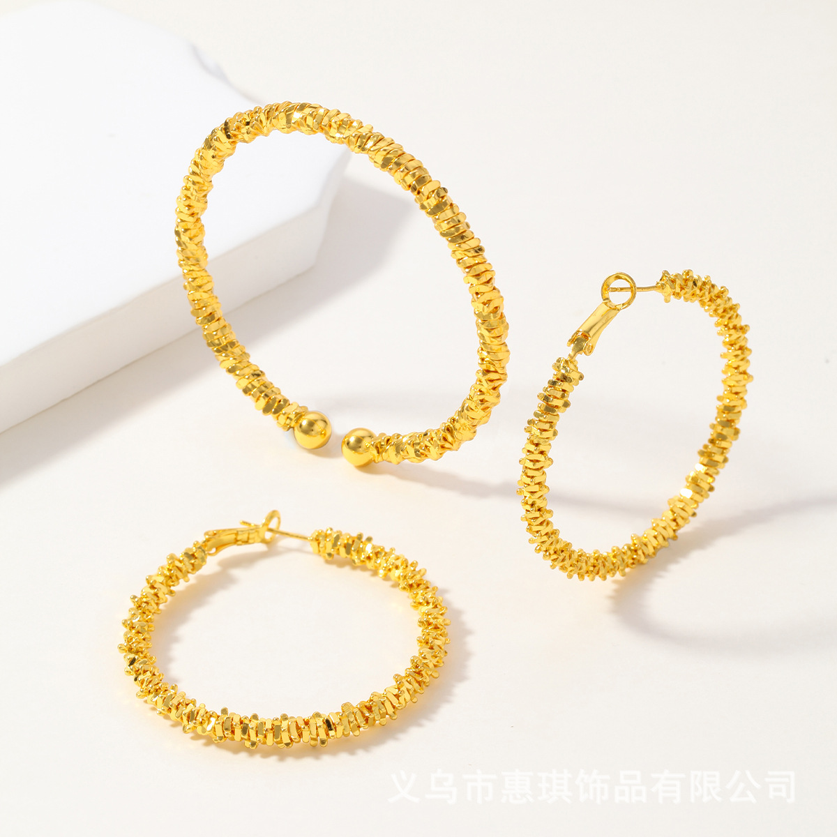 Minimalist European and American Ins Copper Gold-Plated Bracelet Color-Preserving Open Bangle with Matching Earrings Light Mature Style Business Jewelry Wholesale