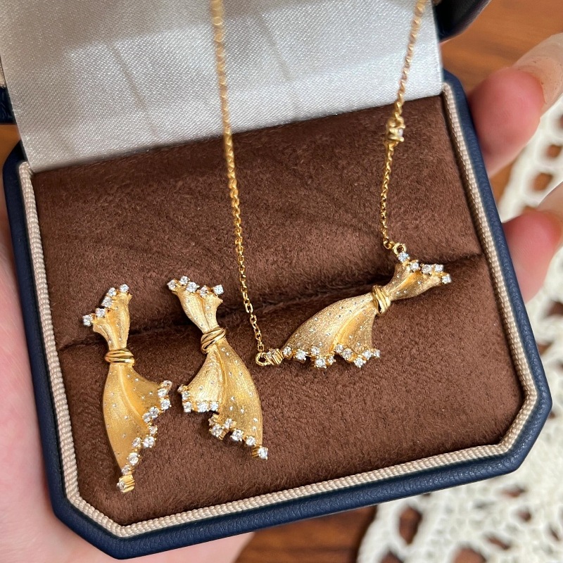 Girl's dancing bowknot necklace Vietnam sha jin zhou's same style shiny brushed light series stud earrings bracelet