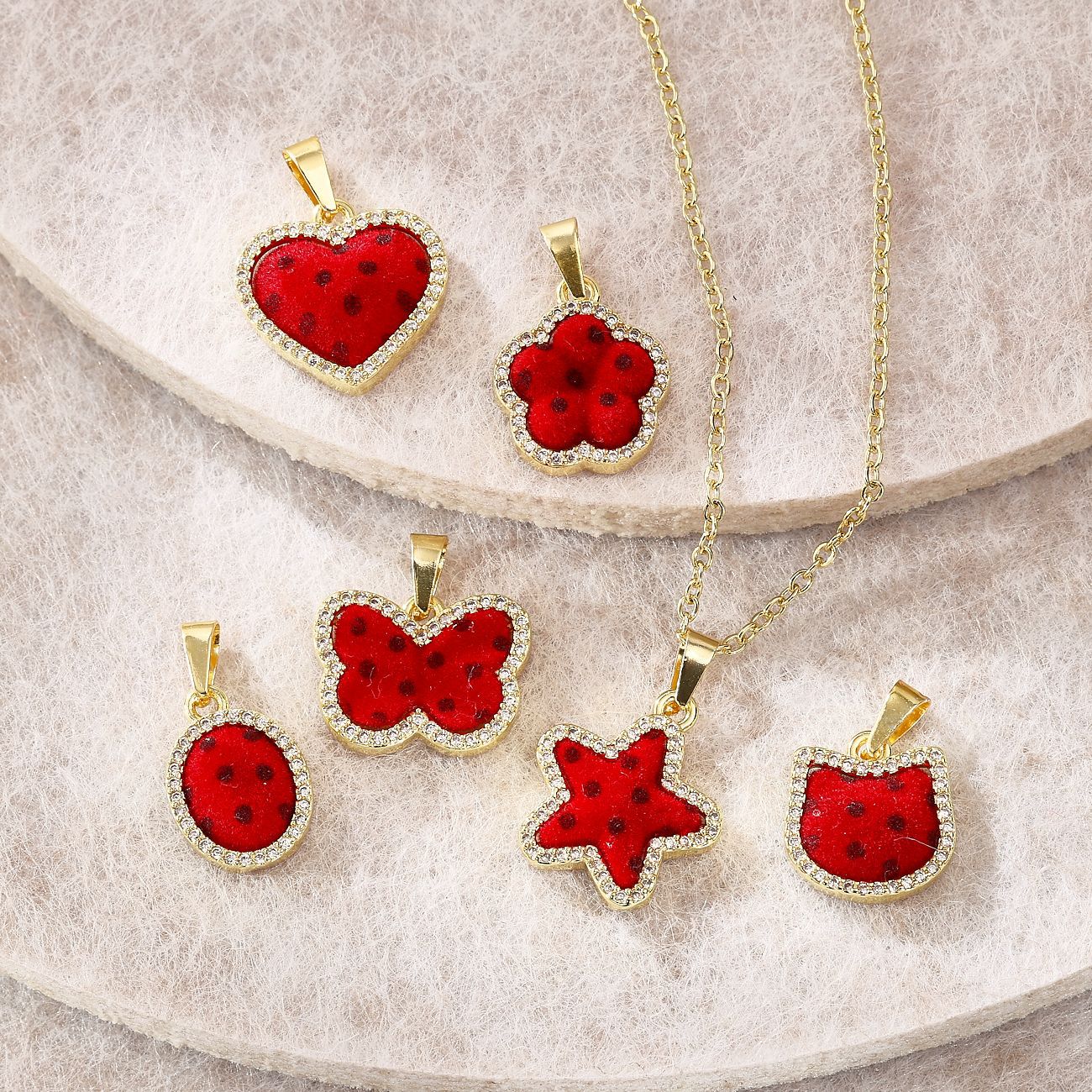 Red Flocked Polka Dot Jewelry Set, Love Butterfly, Stars and Other Multi-Element Sweet Style Daily Wear Jewelry