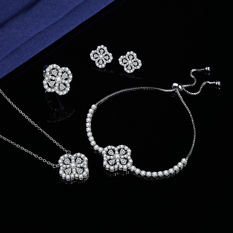 Cross-Border E-Commerce Light Luxury Diamond-Encrusted Four-Leaf Clover Flower Bracelet Ring Pendant Necklace Earrings Exquisite Jewelry Five-Piece Set