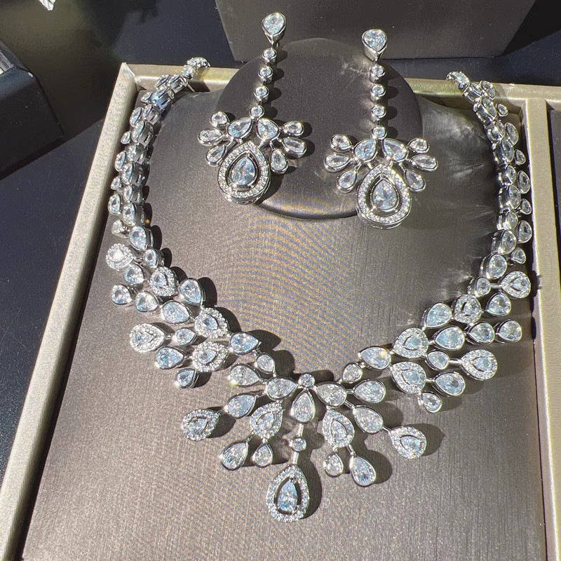European and American Fashion Elegant Leaf Copper Zircon Necklace Earrings Jewelry Two-piece Set Bridal Accessories Gift for Women