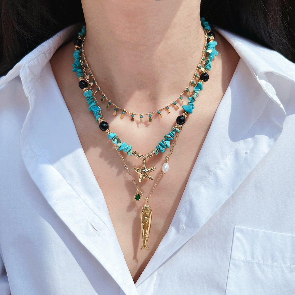 Original Turquoise Stacked Multi-Layer Necklace Pearl Fishtail Pendant Starfish Earrings Beaded Bracelet Seaside Style 49
