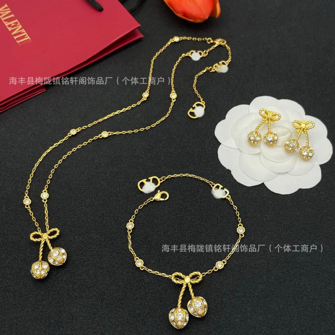 Huajia V Letter Full Diamond Earrings 25 New Cherry Pendant Necklace Elegant Retro Versatile E-Commerce Live Broadcast Wholesale