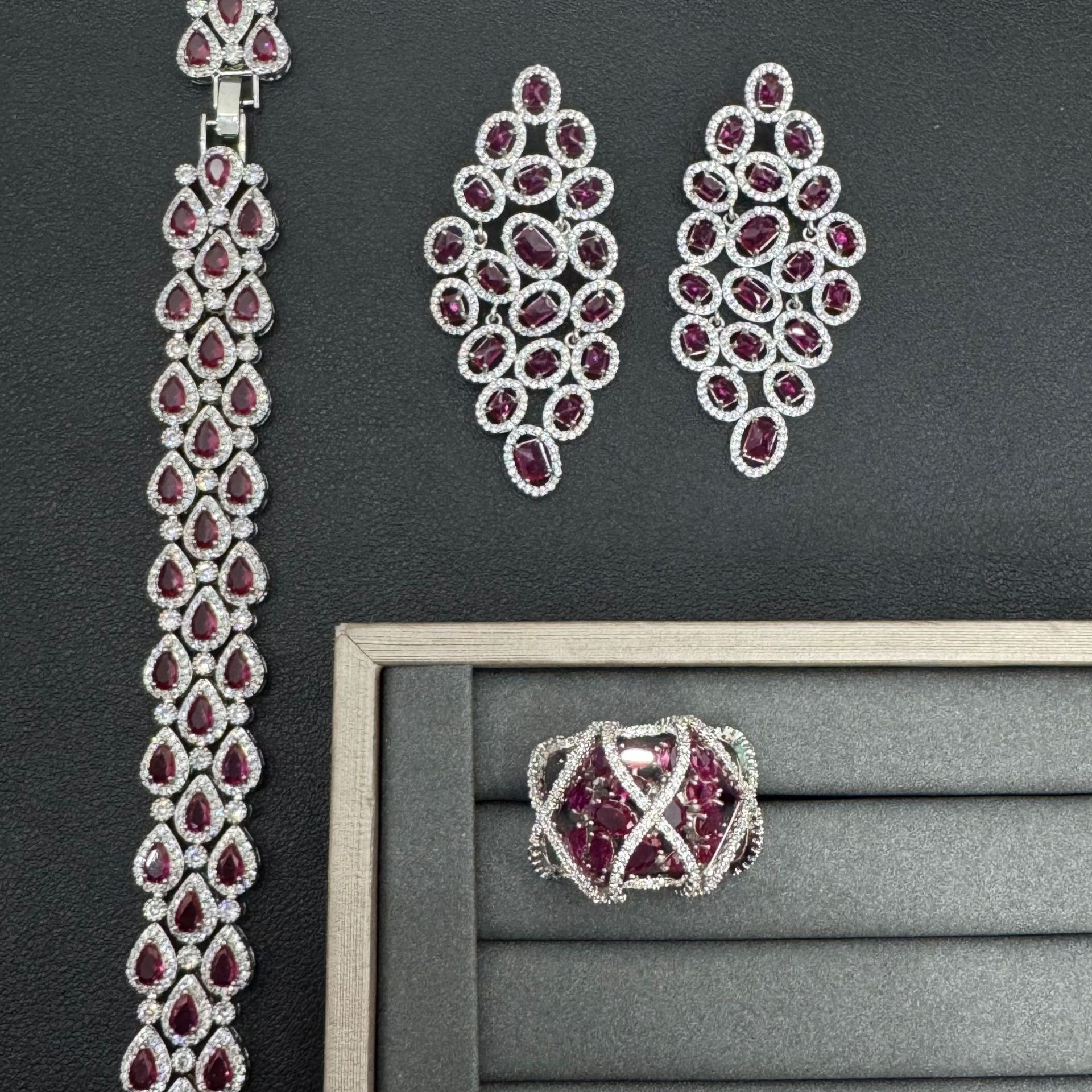 Amazon Aliexpress Trendy Fashion Love Zircon Necklace Set Women's Elegant and Easiest for Match Heart-Shaped Ring Earrings