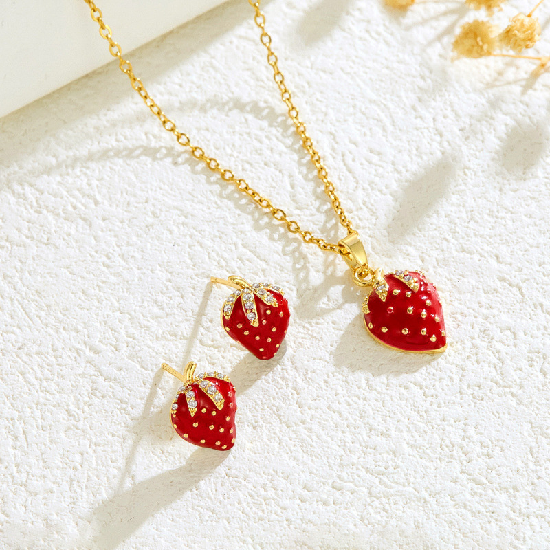 Popular Sweet and Cute Mini Fruit Necklace with Diamond-Encrusted Oil-Dropping Strawberry Earrings Niche Personalized Exquisite Jewelry