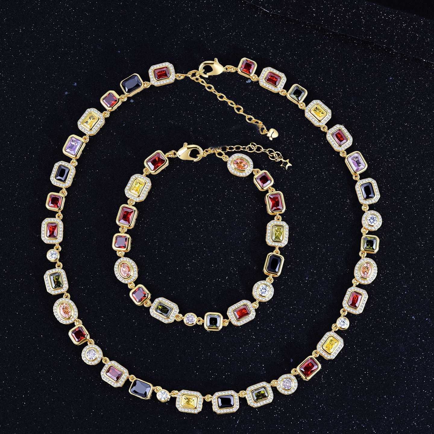European and American Cross-Border Hip-Hop Colored Gemstone Women's Jewelry Necklace Jewelry High-End Zircon Men's Necklace Wholesale