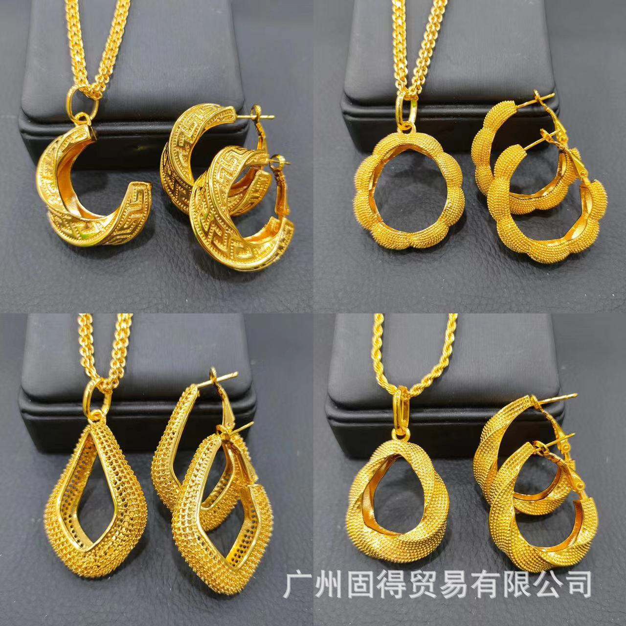 Supply Dubai sand gold irregular pendant necklace earrings two-piece set 24k gold temperament bridal jewelry set