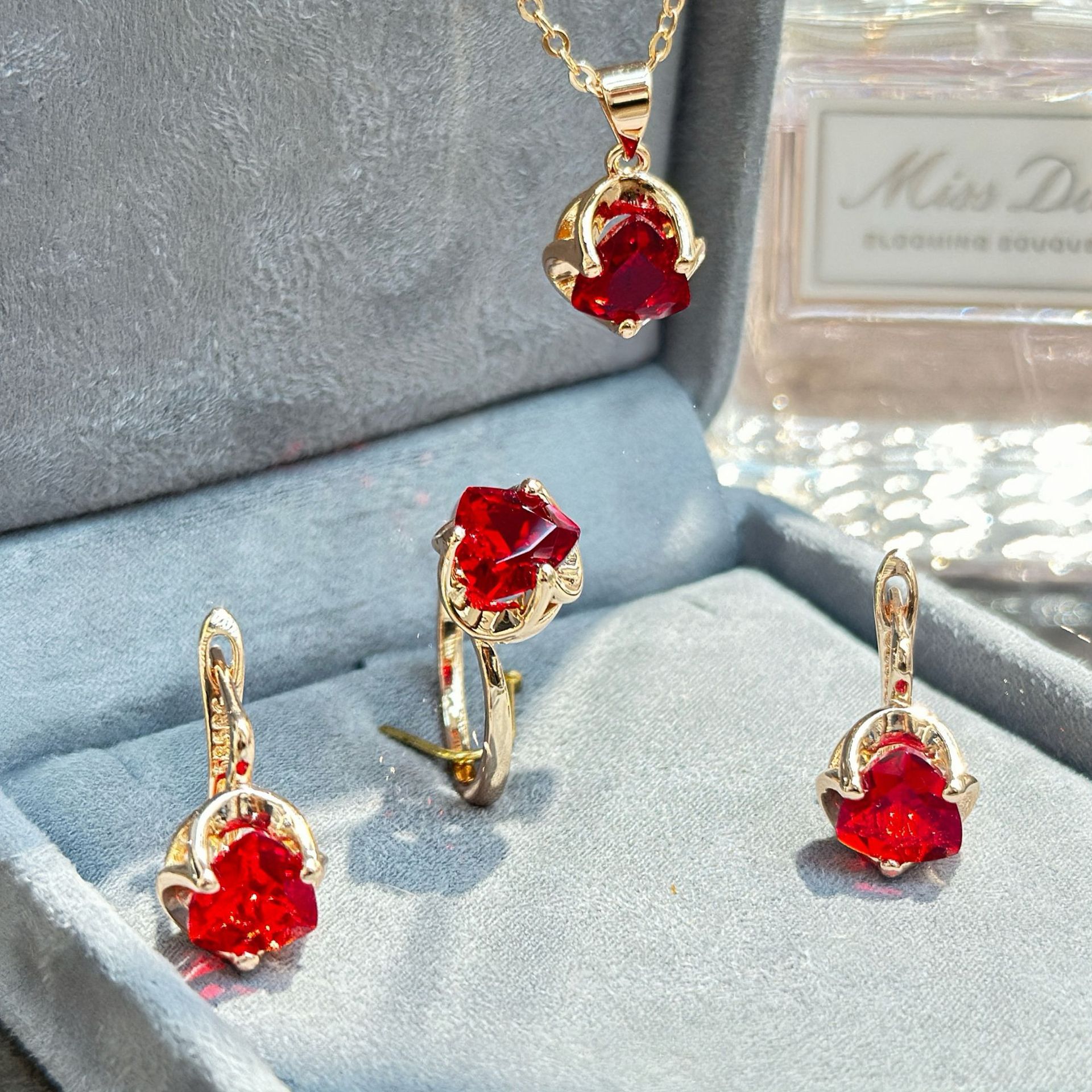Gulkina585 Rose Gold Retro Ruby Set Jewelry Cross-border E-commerce Little Red Book TikTok Explosions Jewelry