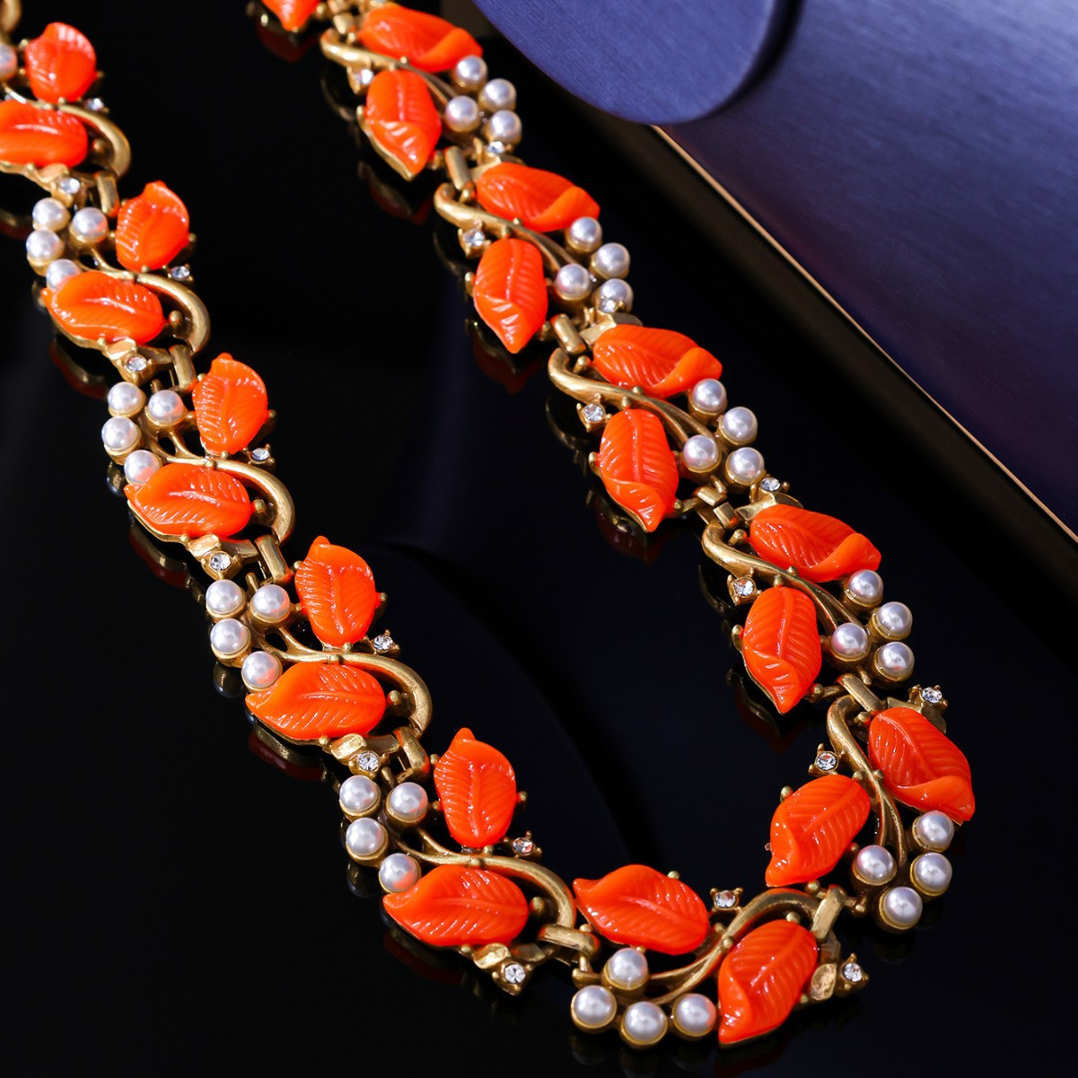 French Retro Style Leaf Shape Elegant Pearl Design Bracelet Earrings Necklace High-End Medieval Jewelry Set
