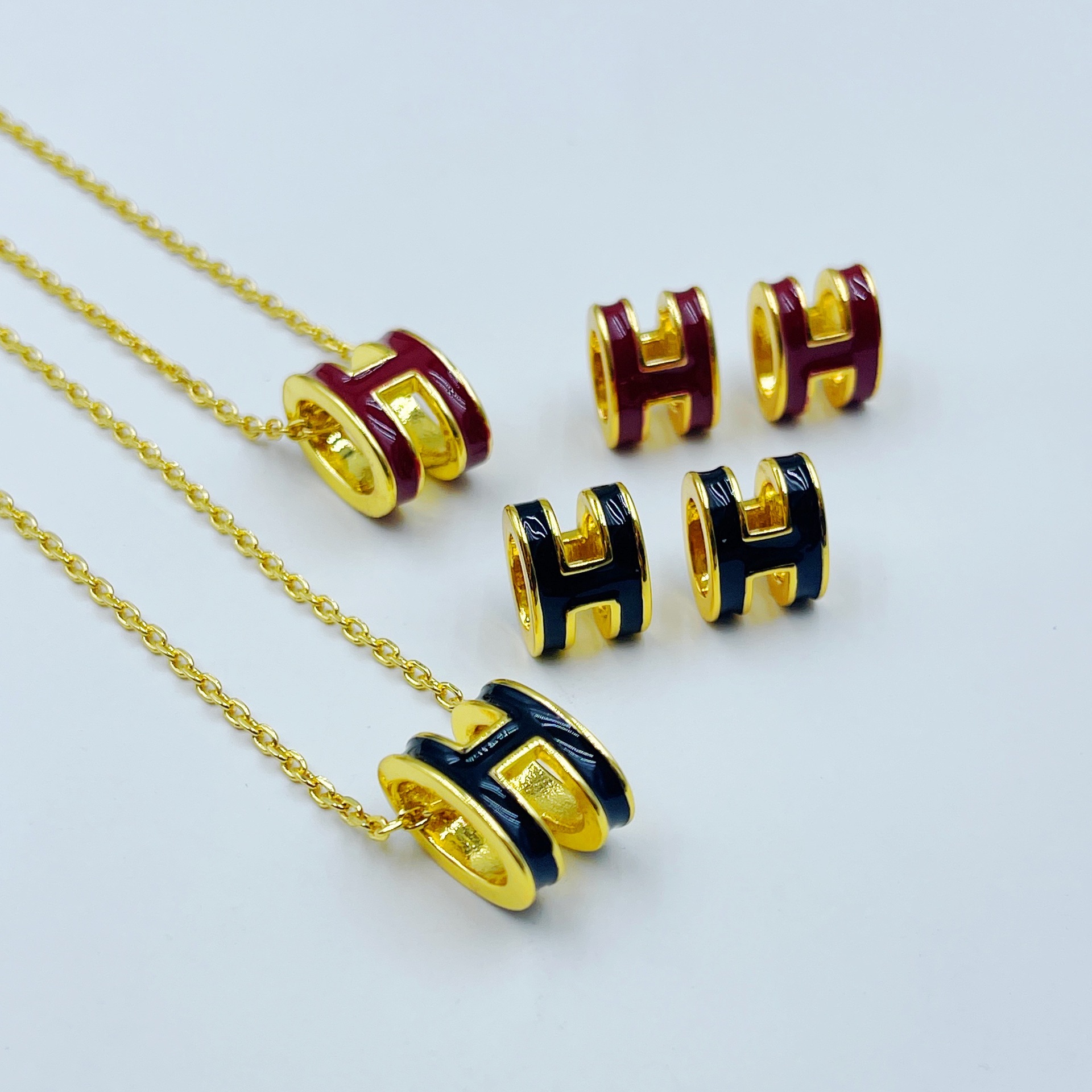 French Entry Luxury Letter Stud Earrings for Women Niche Design Drop Glaze Neckchain Enamel All-match Clavicle Chain Fashion Jewelry suit