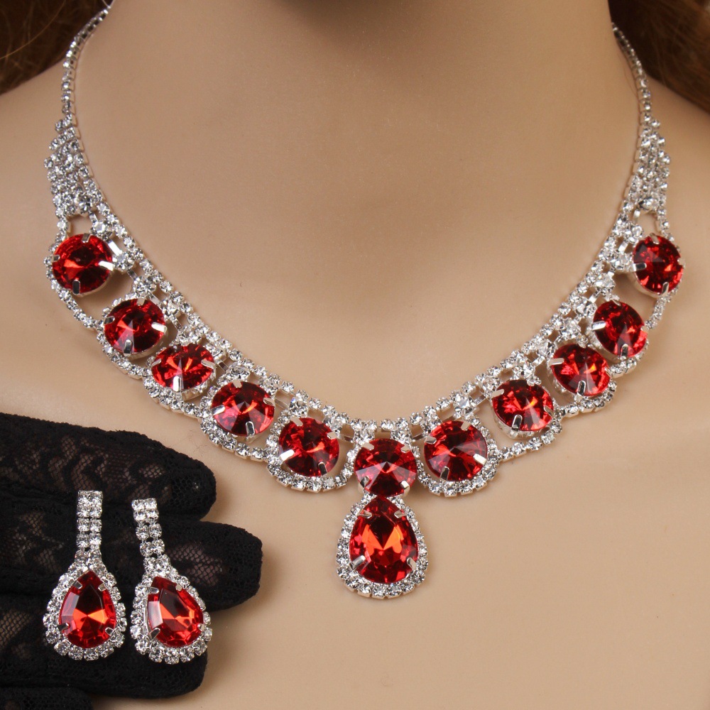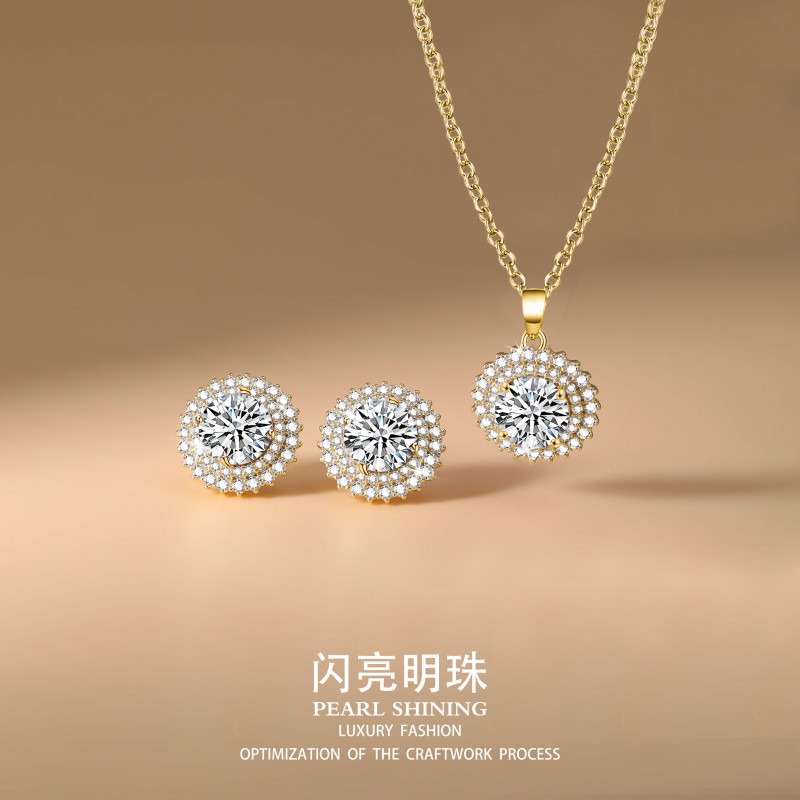 Cross-Border Bridal Jewelry Set European and American Necklace and Earrings Two-Piece Set Liangya Beauty Bridal Jewelry Set