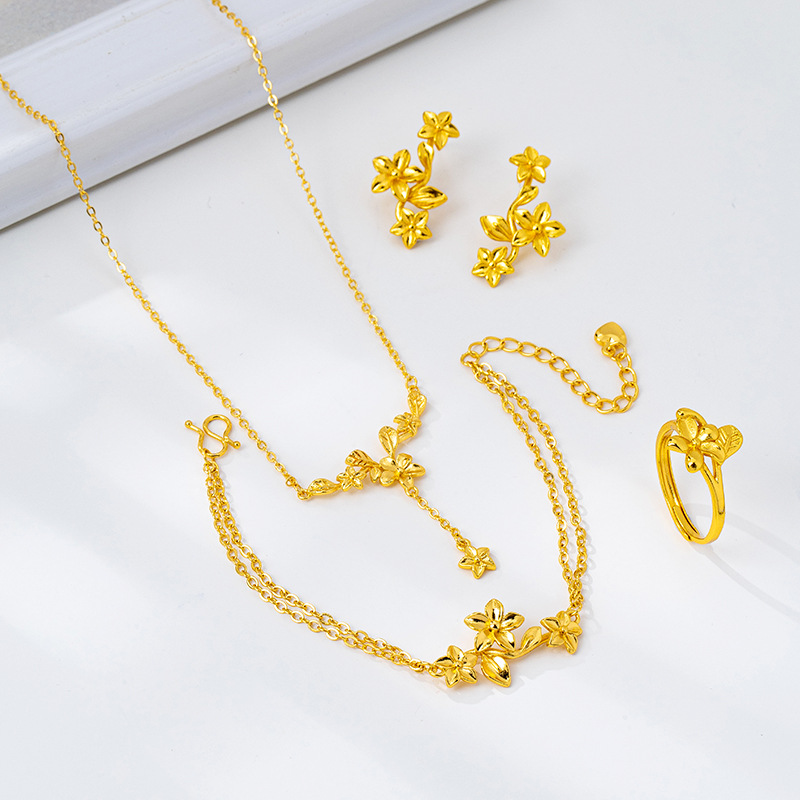 New Chinese Style Vietnamese Sand Gold Necklace Simple Jasmine Tassel Bracelet Ring Earrings Set Versatile Imitation Gold Jewelry