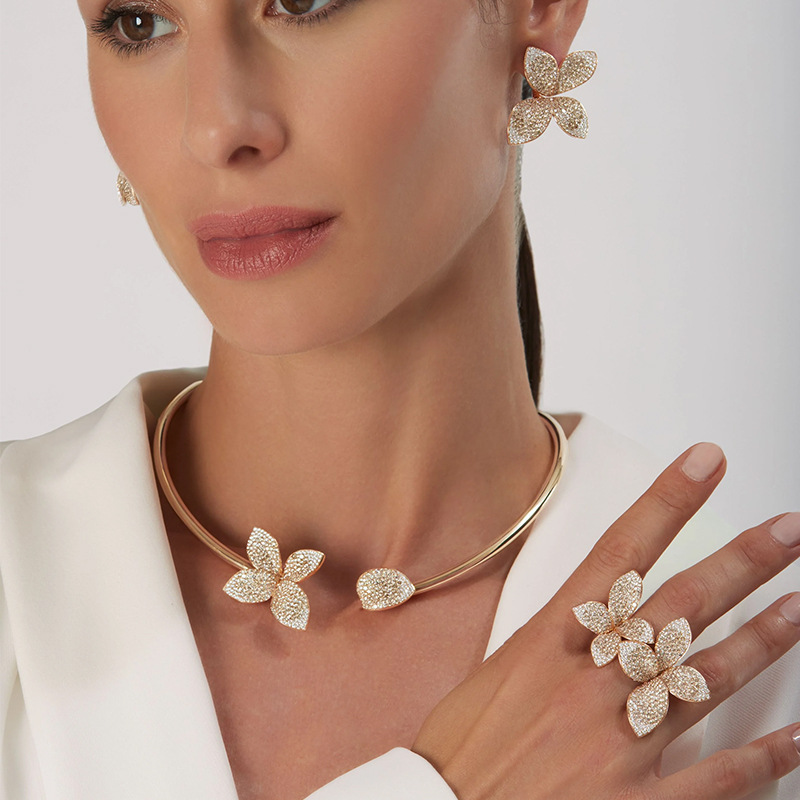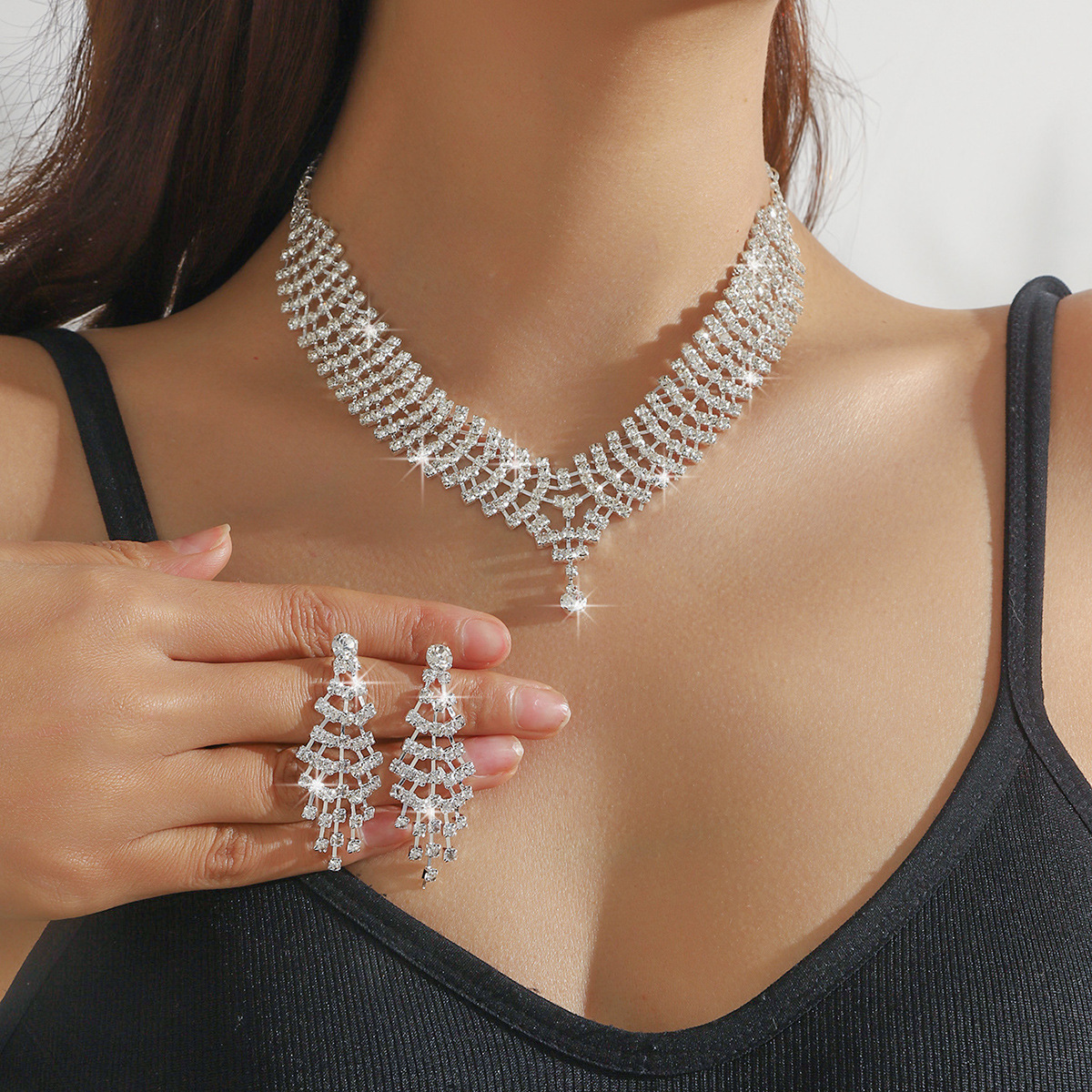 Amazon Best Selling Flower Jewelry Set High-End Three-Piece Rhinestone Necklace Accessories Women's Jewelry Set