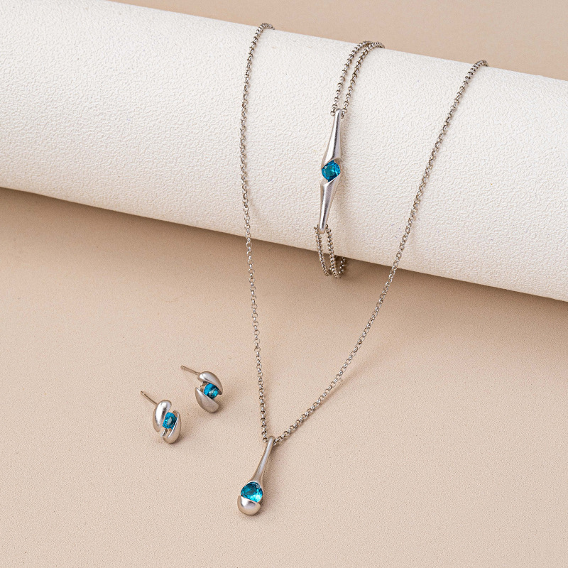 2024 Douyin Tiktok Live Broadcast Fashion Supply European and American Style Retro Artificial Paraiba Jewelry Three-Piece Set