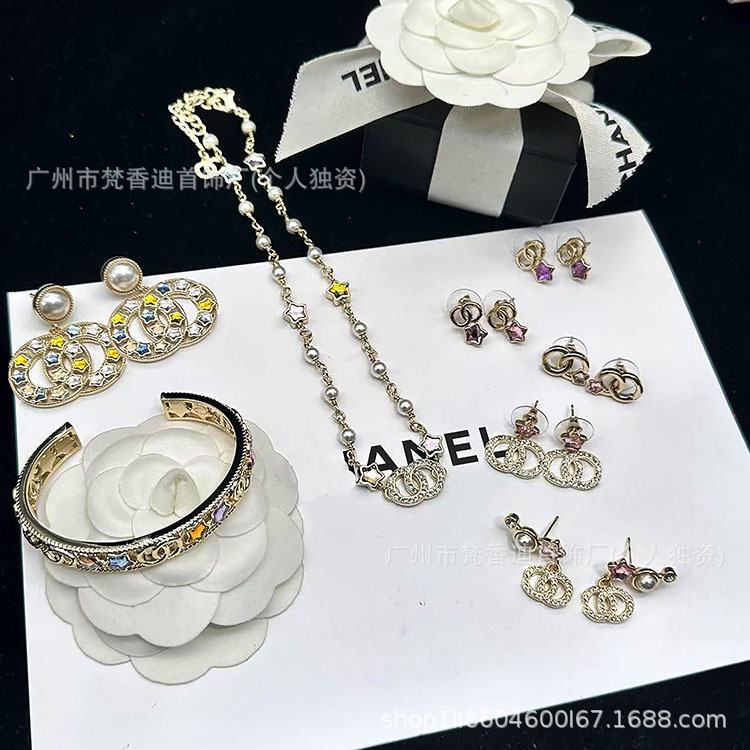 New Style Small Fragrance 25P Colorful Crystal Diamond Five-Pointed Star Necklace for Women Real Shot High-End Crystal Earrings Bracelet Jewelry