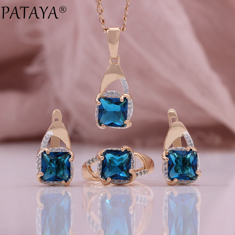 Factory Direct Supply Zircon Earrings Ring Pendant Necklace Fashion European and American Copper Plated 585 Rose Gold Jewelry