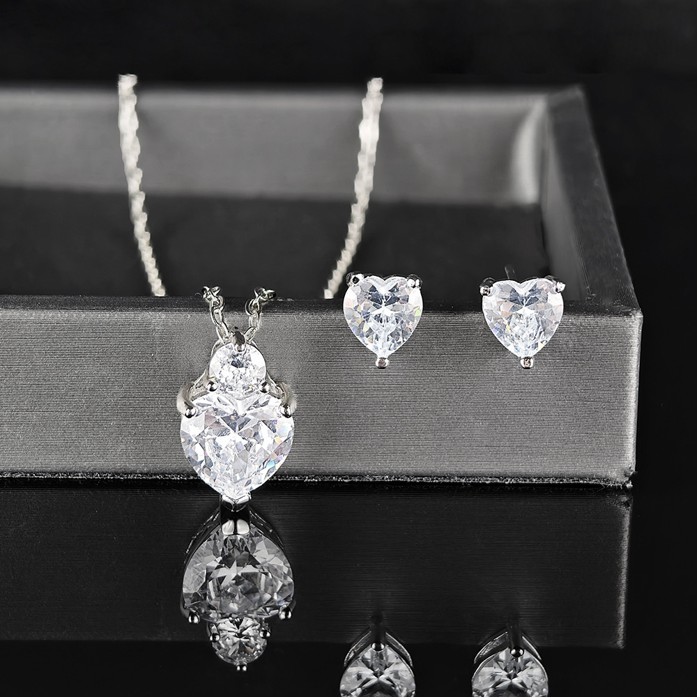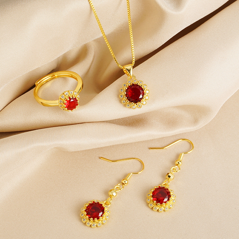 Aliexpress Cross-Border New Product Light Luxury Pomegranate Red Love Zircon Earrings Necklace Women's Niche High-End Earrings Wholesale