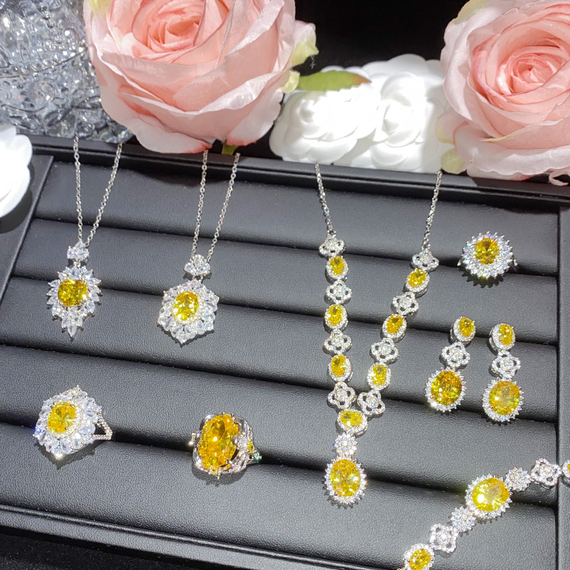 Tiktok live full diamond flower red corundum amethyst Pink Diamond Champagne Diamond zircon suit ring stud earrings pendant