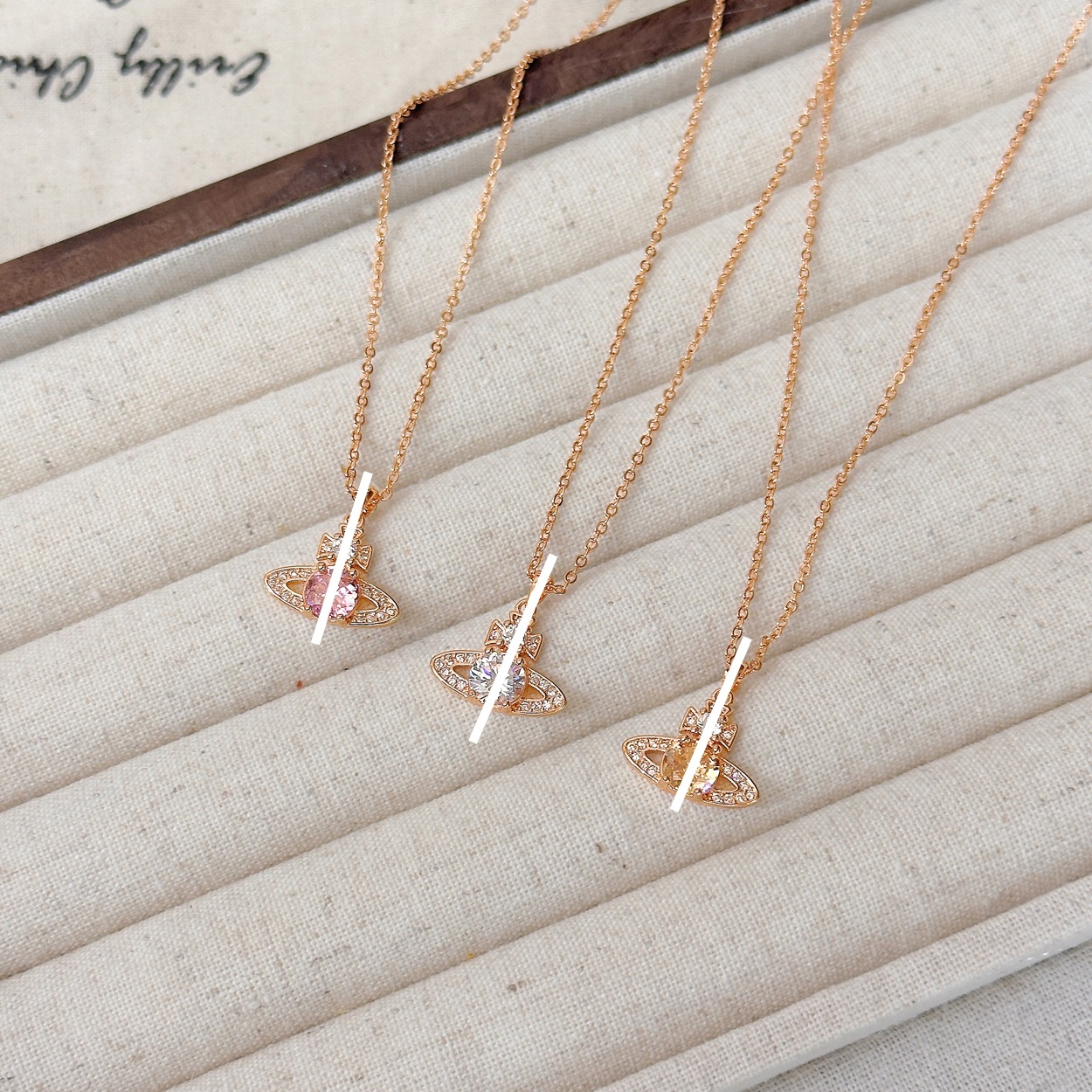 Tiktok Trending High-Quality Diamond-Studded Open Saturn Necklace, Beautiful, Sweet, Cool, Light Luxury, High-End Collarbone Chain for Women