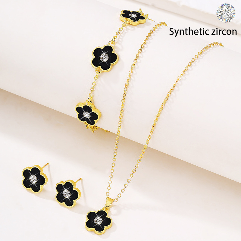 Cross-border supply of new diamond five-petal flower bracelet three-piece set Europe and the United States best selling five-leaf clover jewelry suit wholesale
