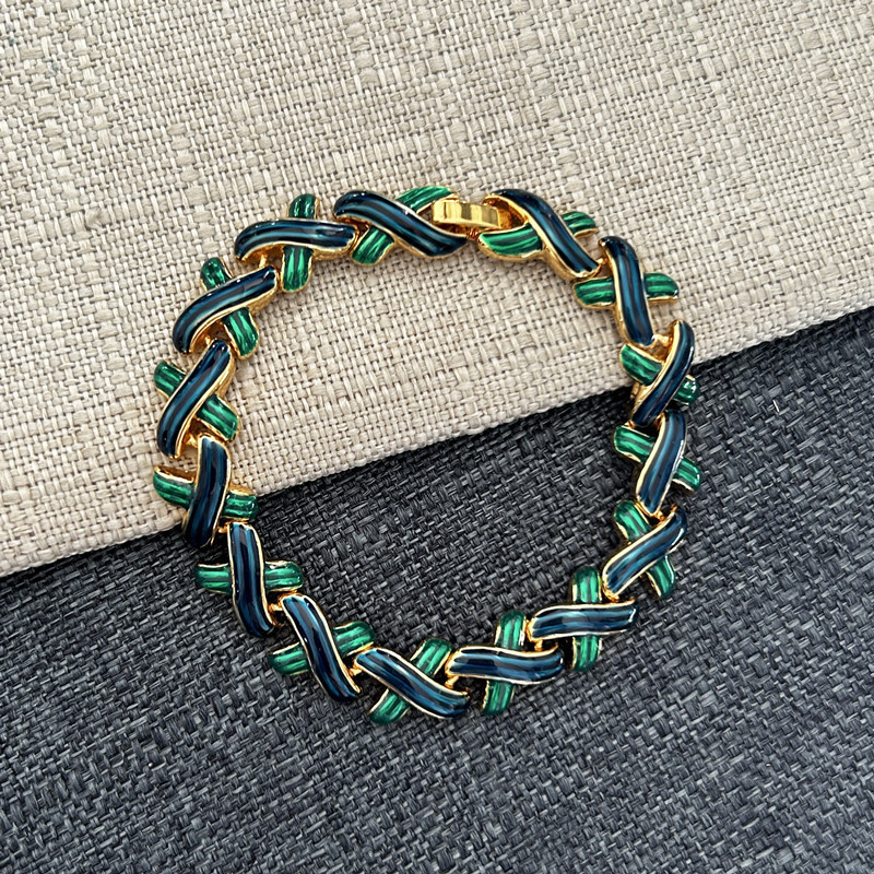 Vintage vintage Middle Ancient Enamel Glaze Wavy Blue Green Geometric Cross Bracelet Snap Bracelet Necklace Jewelry