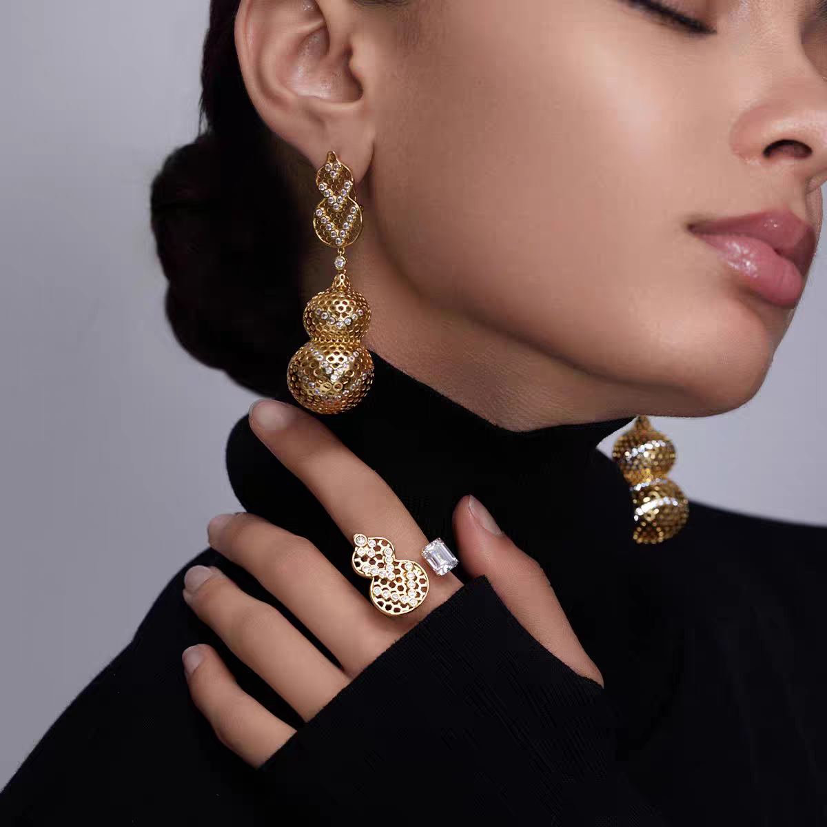 Niche Design'Yihu Baishun' Zircon Gourd Earrings Jewelry Handmade Three-Dimensional Fortune and Prosperity Earrings with Elegant Style