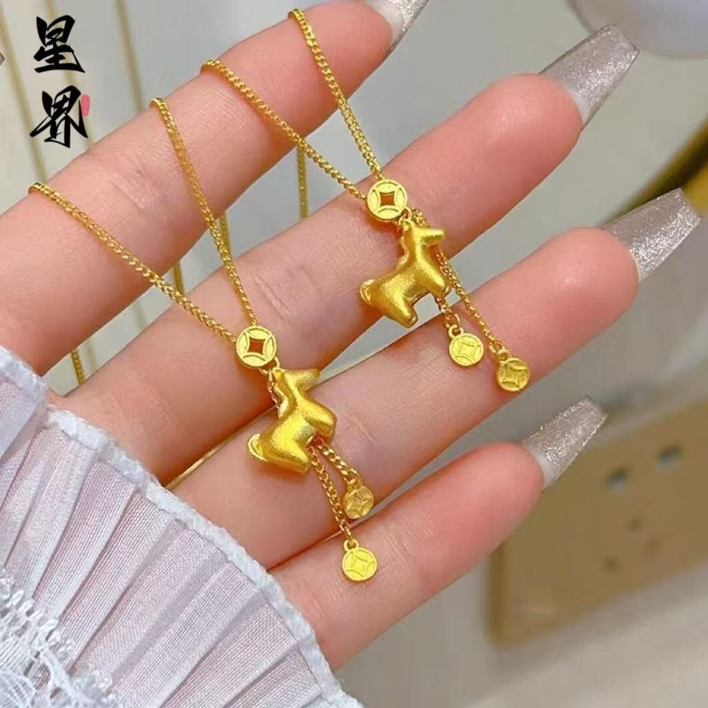 Gold Shop Same Style Ancient Gold Nugget Instant Wealth Pony Coin Tassel Chain Light Luxury Necklace Bracelet Jewelry Wholesale