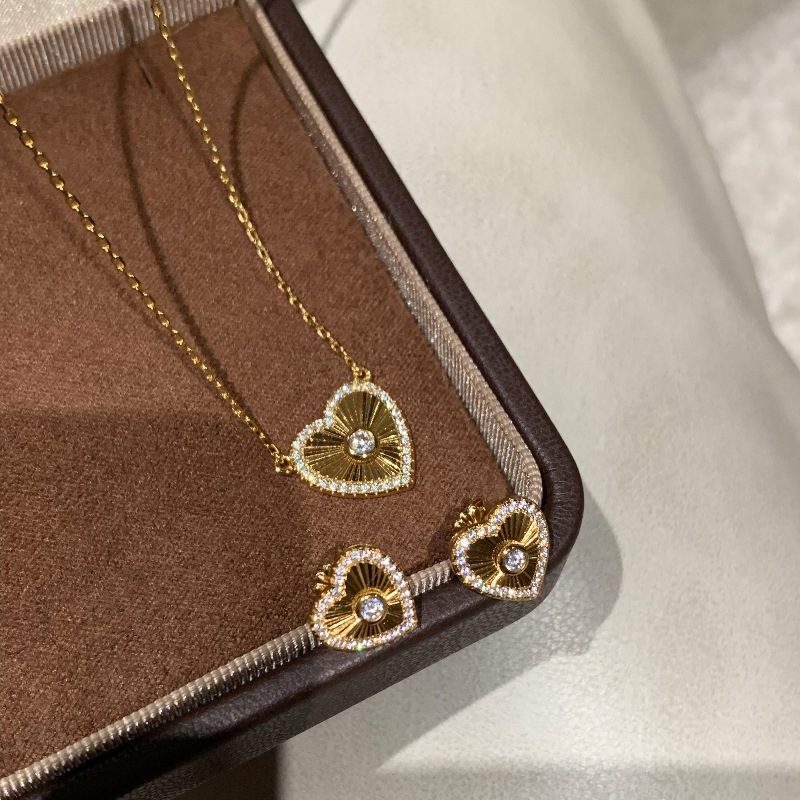 Middle Ages Full Circle Full Diamond Laser Love Pendant Necklace Earrings Super Flash High Beauty Light Luxury Stacked Jewelry suit