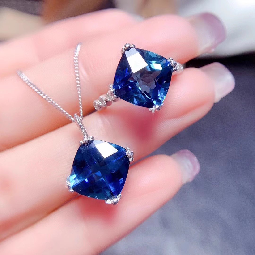 New Elegant Princess Square Diamond London blue pendant inlaid Topaz sapphire color treasure suit open mouth ring for women