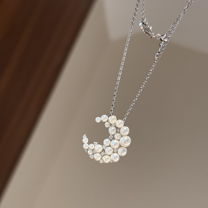 Light Luxury High-End Irregular Pearl-Encrusted Diamond Flower-Filled Star Earrings Crescent Necklace Fashionable Versatile Exquisite Set