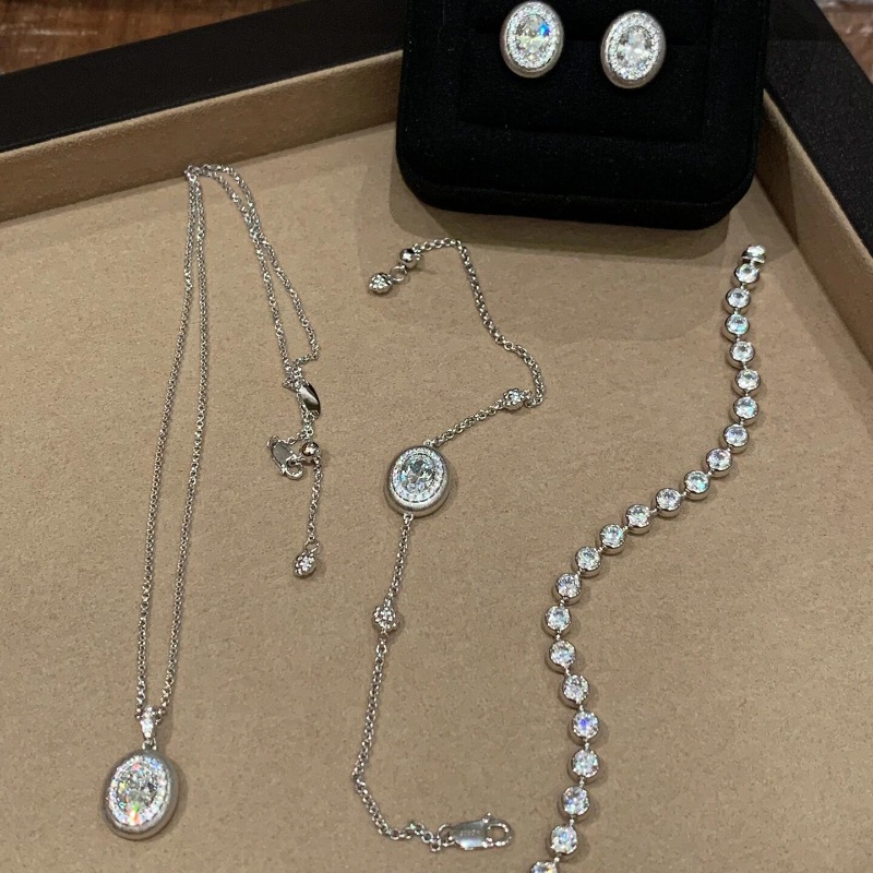 Jewelry Supply European and American Fashion Wedding Dress Women Jewelry Bride Water Diamond Necklace Earrings Two-piece Set
