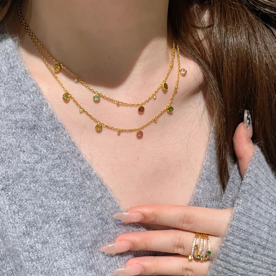 Light Luxury Fashion Rainbow Candy Tourmaline Bracelet Bubble Diamond Falling Tassel Necklace Dopamine Color Treasure Ring