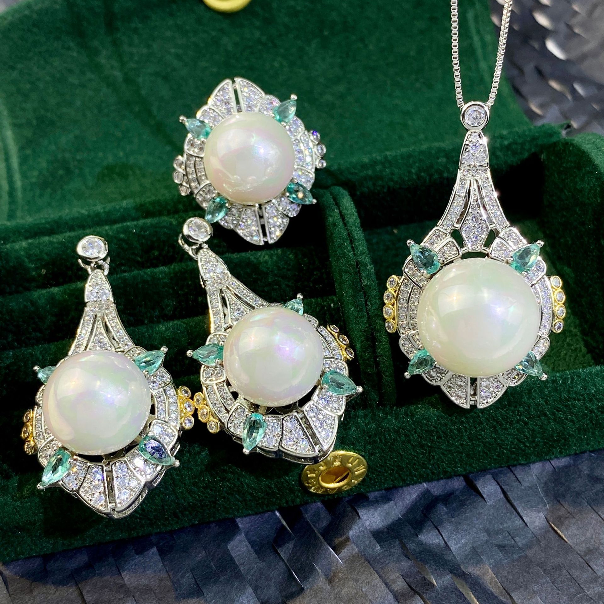 2025 Huabi Jewelry Simulated Bird's Nest Chapa La Green Jewelry Fashion Light Luxury Set 15*20-13*18