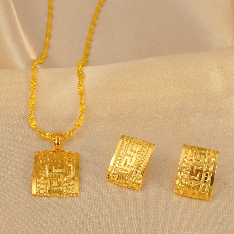 24K Gold Plated Middle East Dubai Women's Love Jewelry, Square Design Pendant Earrings, Back to School Season Gifts