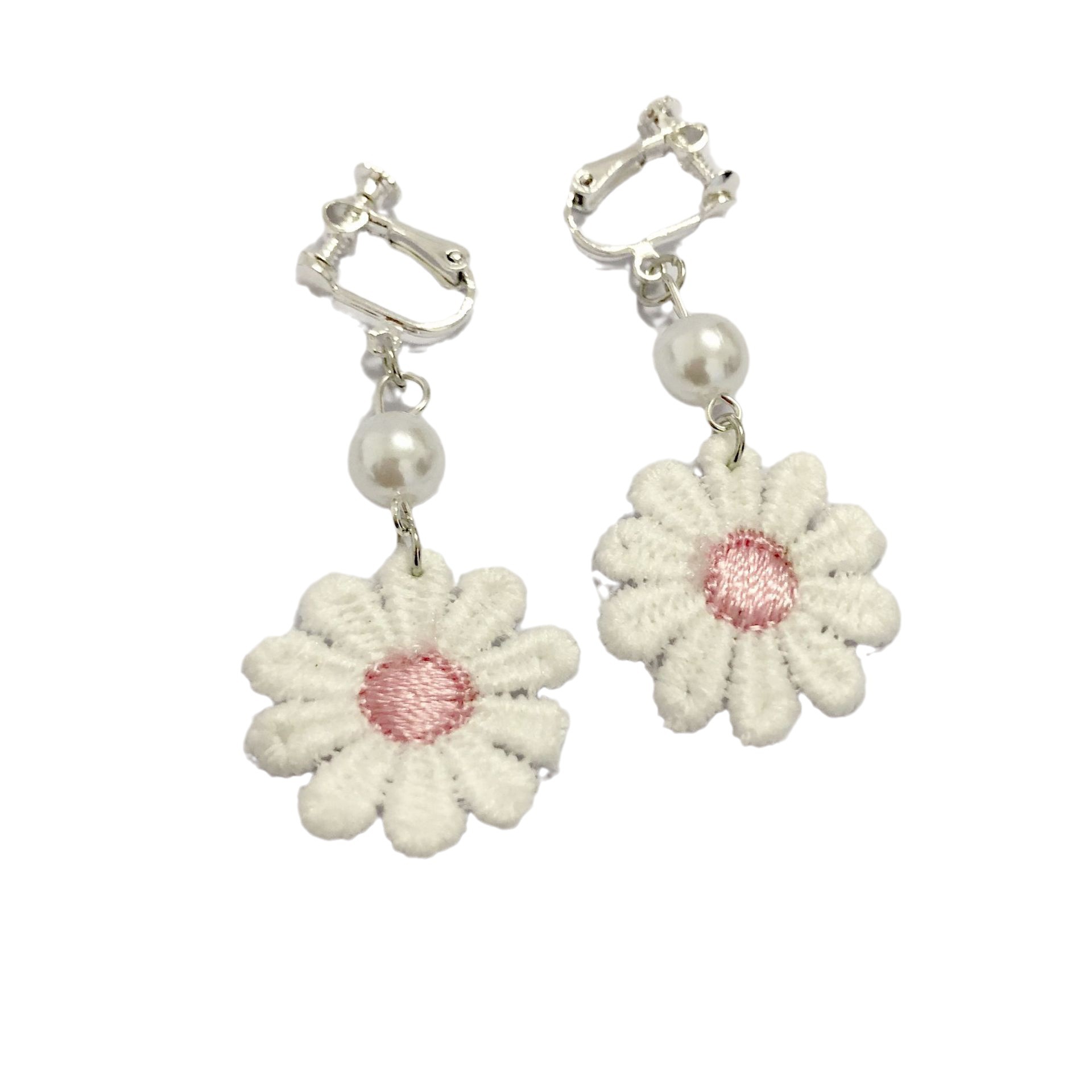 New in Hot-Selling Cross-Border Cute Princess Silver Needle Copper Ear Clip Flower Pearl Beaded Bracelet Flower Necklace Set