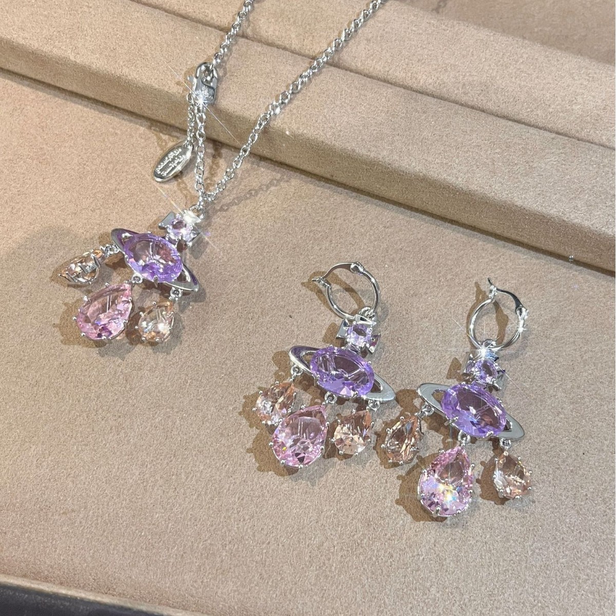Xijia Saturn New Series Pink Amethyst Dream Catcher Water Drop Necklace Sweet Princess Accessories Fashionable and Easiest for Match