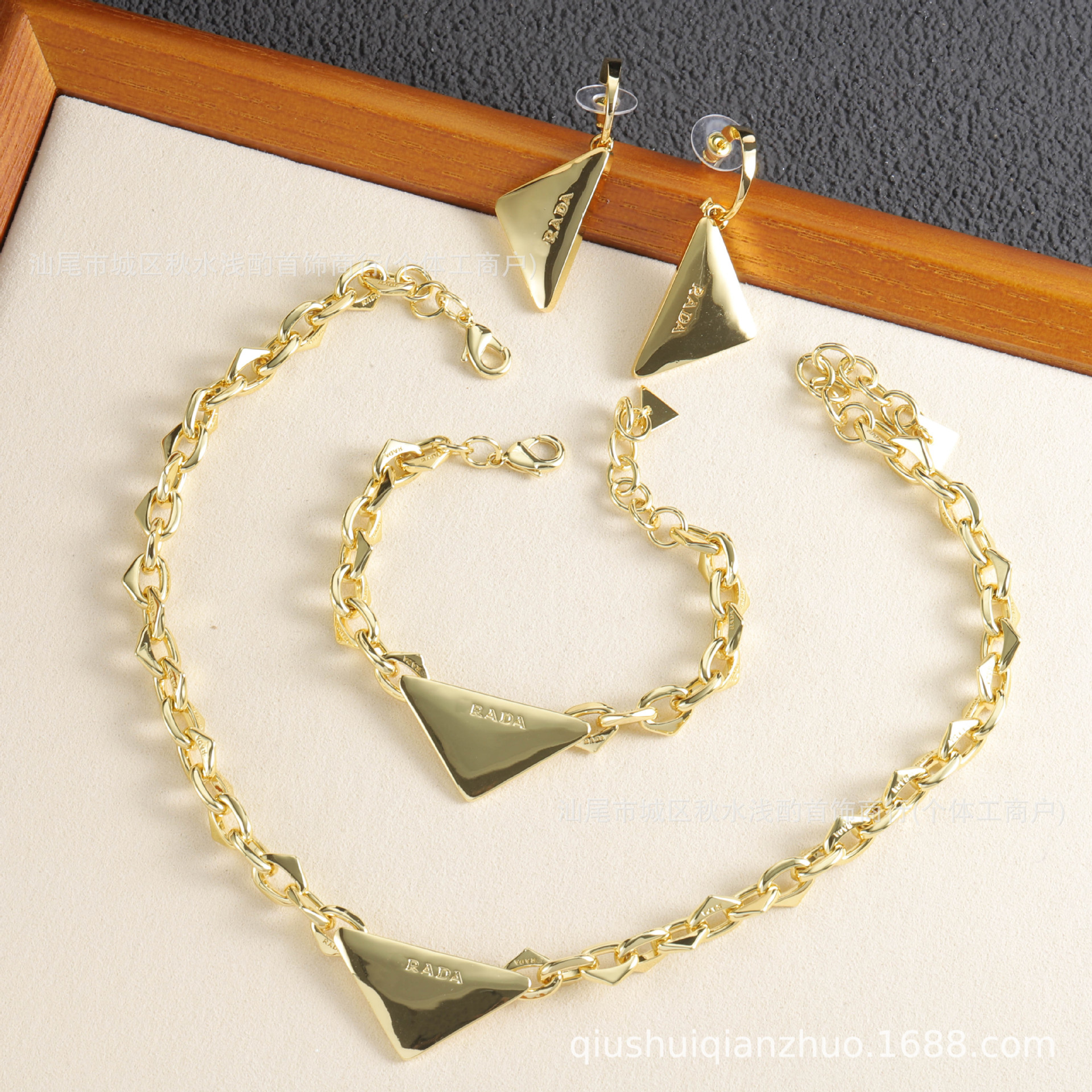 Pujia Pjia Inverted Triangle Letter Necklace Women's European and American Fashion Bracelet Accessible Luxury High-End 925 Silver Needle Earrings