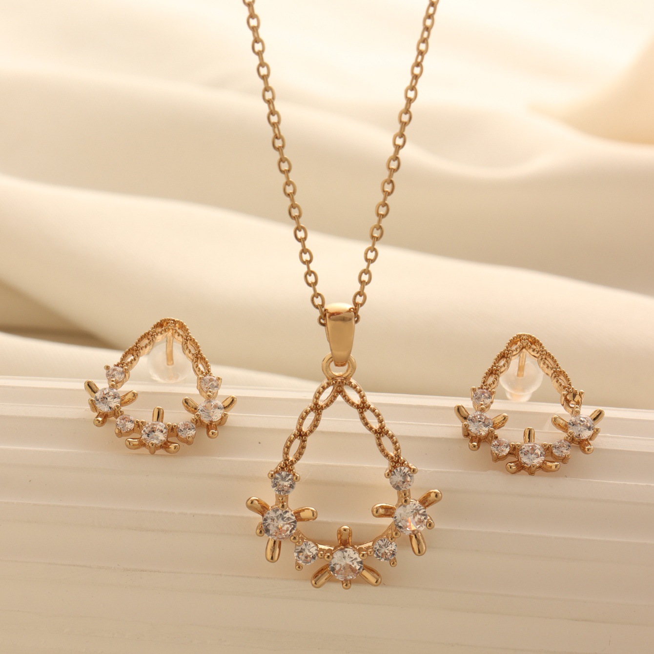 Garland Pendant Necklace Clavicle Chain Copper Zircon Gold-Plated Jewelry Earrings Wholesale Gold-Plated Earrings Wholesale