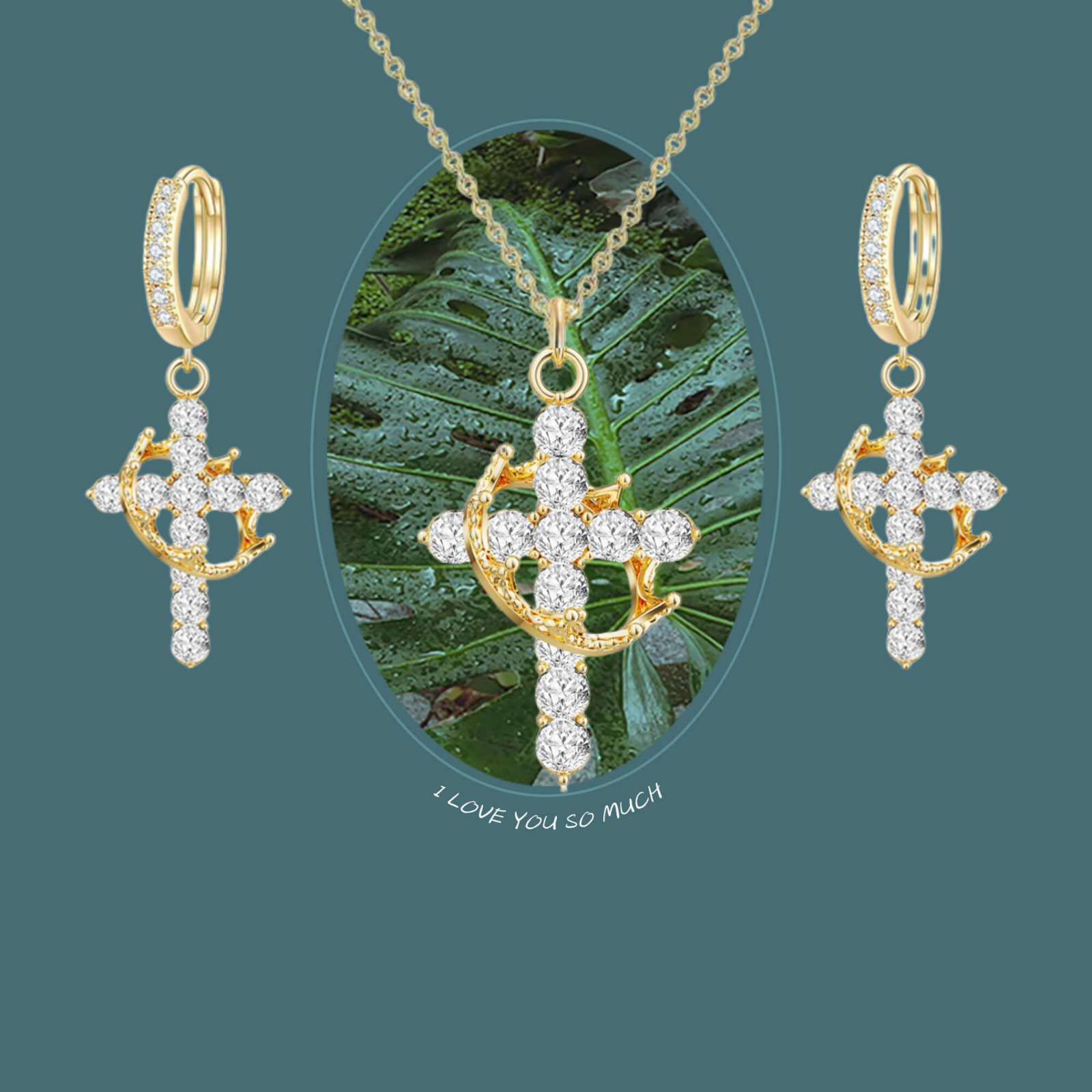 Cross-Border Amazon New Fashion Literary Retro Cross Crown Earrings Necklace Women's Niche Ear Jewelry