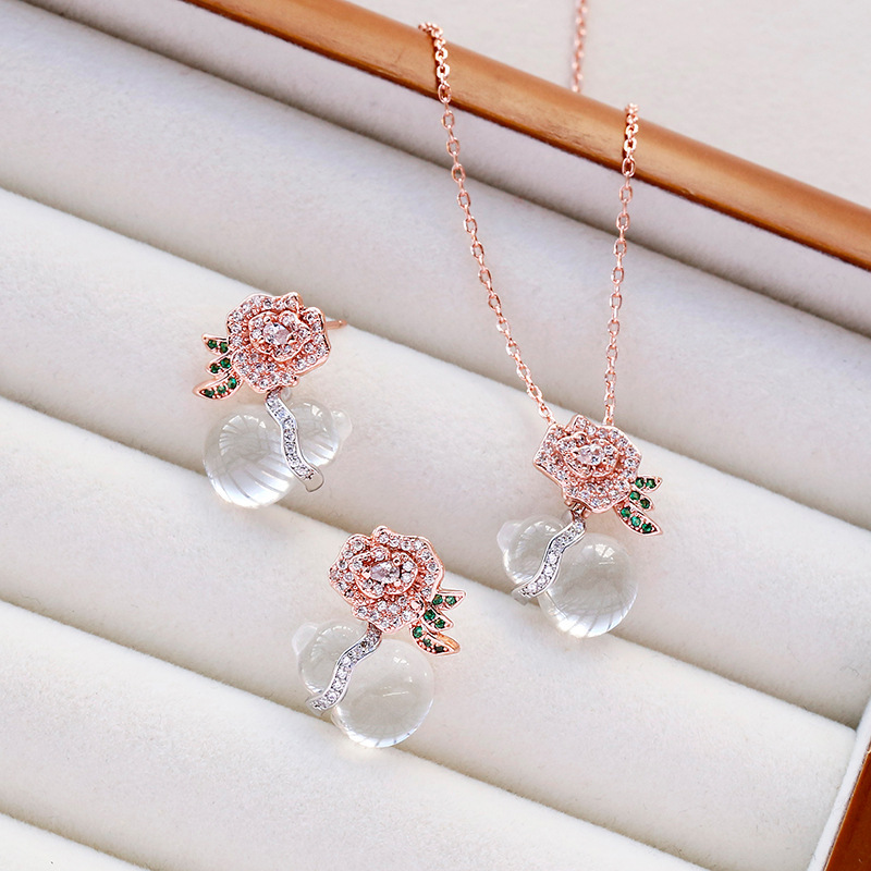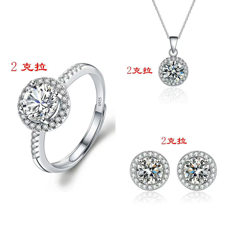Cross-border Hot Selling Necklace Women's Ring Earrings Pendant Three-piece Set Imitation Moissanite Elegant High-grade Internet Celebrity Pendant