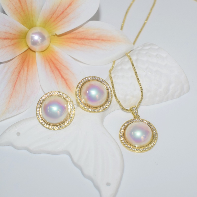Colorful Abs Mabe Full Zircon Half-Finished Imitation Pearl Earrings Three-Piece Set Jewelry Live Broadcast Hot-Selling Supply Accessories