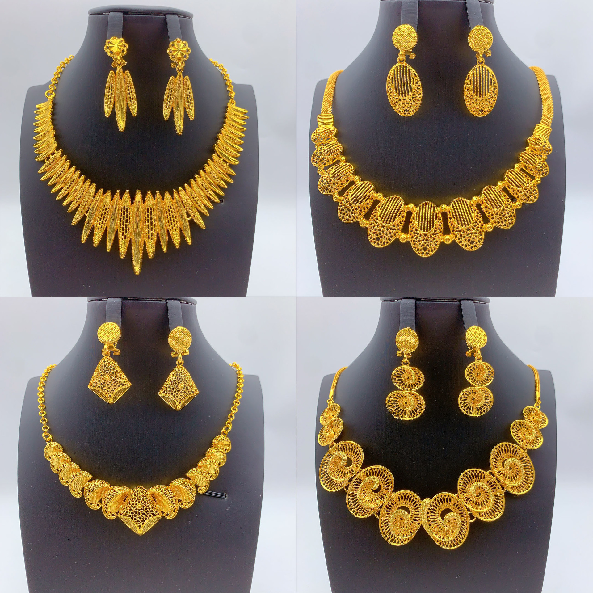 Cross-Border Dubai Imitation Gold Jewelry Set Arabian Bridal Necklace Earrings Middle Eastern Gold-Plated Traditional Wedding Jewelry