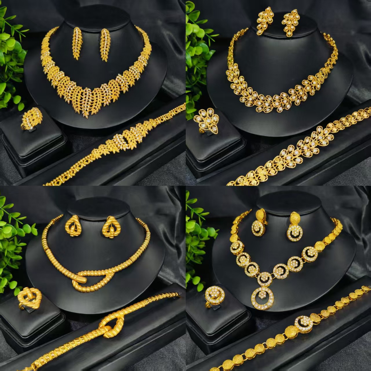 24K Gold Plated Dubai Necklace Earrings Ring Bracelet Set African Bridal Banquet Jewelry Set Spot