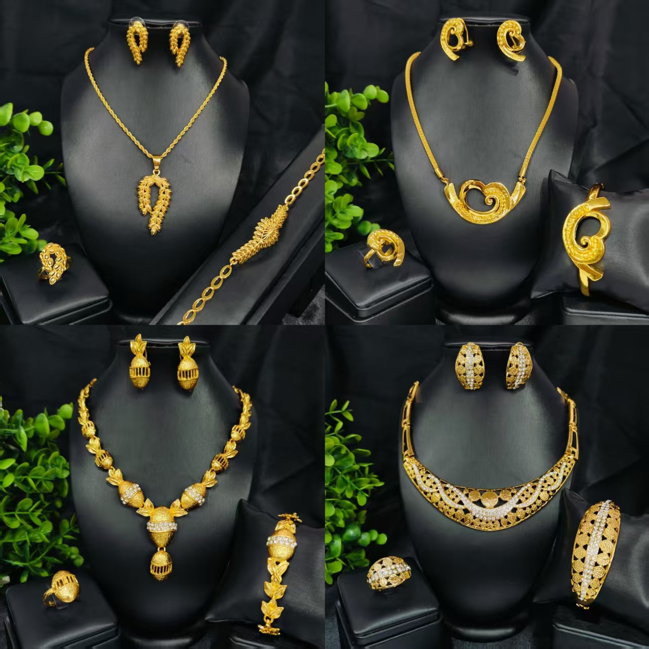 New 24k Gold Plated Dubai Bride Necklace Earrings Ring Bracelet Set India Women Jewelry Set Spot