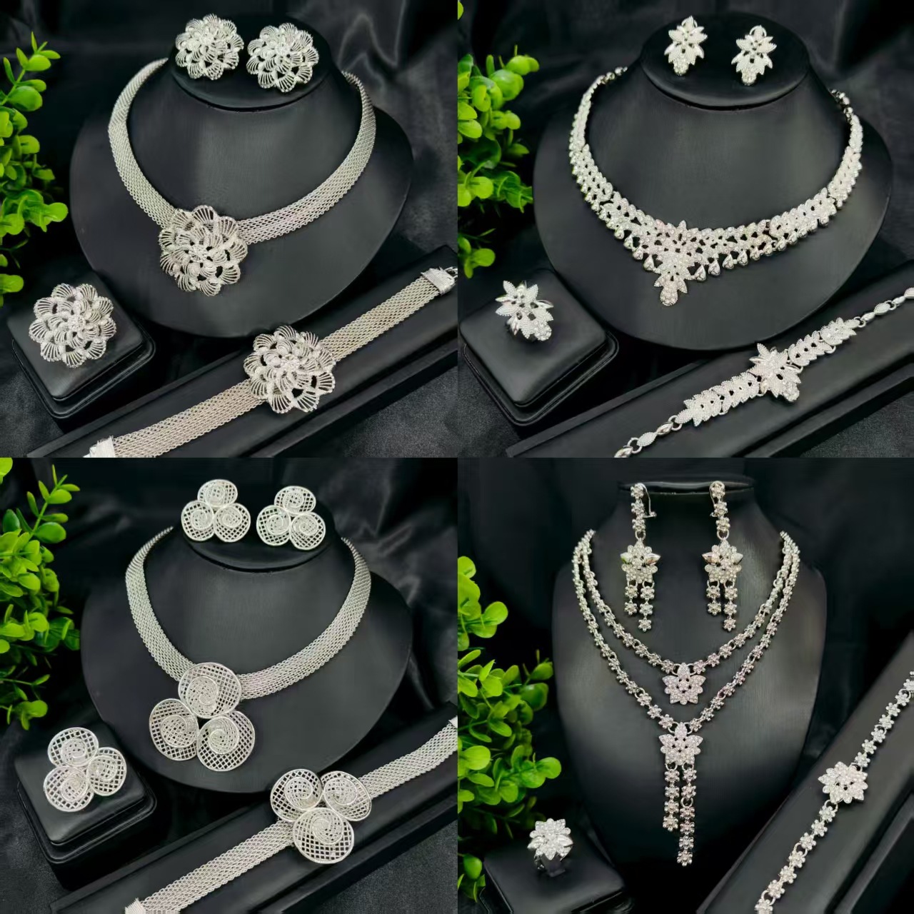 Cross-border New silver White K Niche Bride Fashion Necklace Jewelry suit Luxury Water Drop Necklace Women Earrings Batch