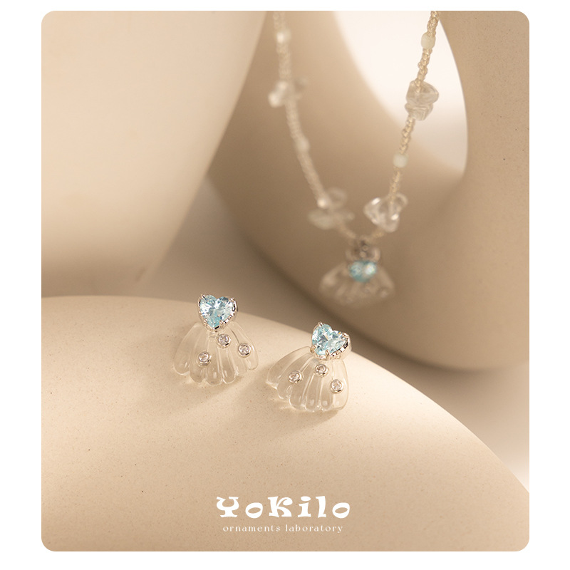 Cute Korean-style New Glass Crystal Shell Shape Niche All-match Dopamine Earrings Necklace Design Sense suit