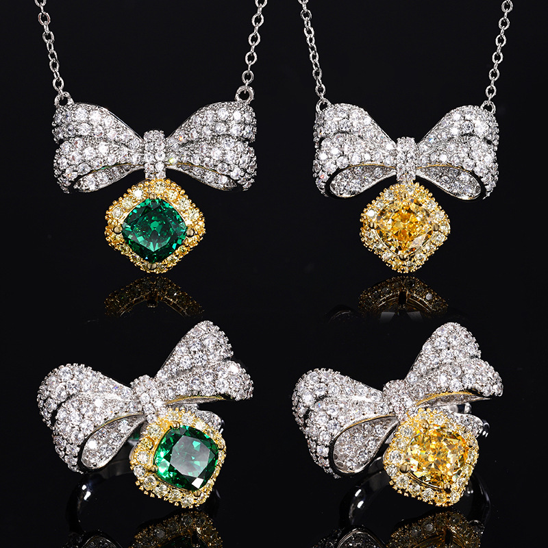 2024 new Zhuangshang jewelry suit high carbon diamond ice flower cut copper set bow suit main stone 8*8