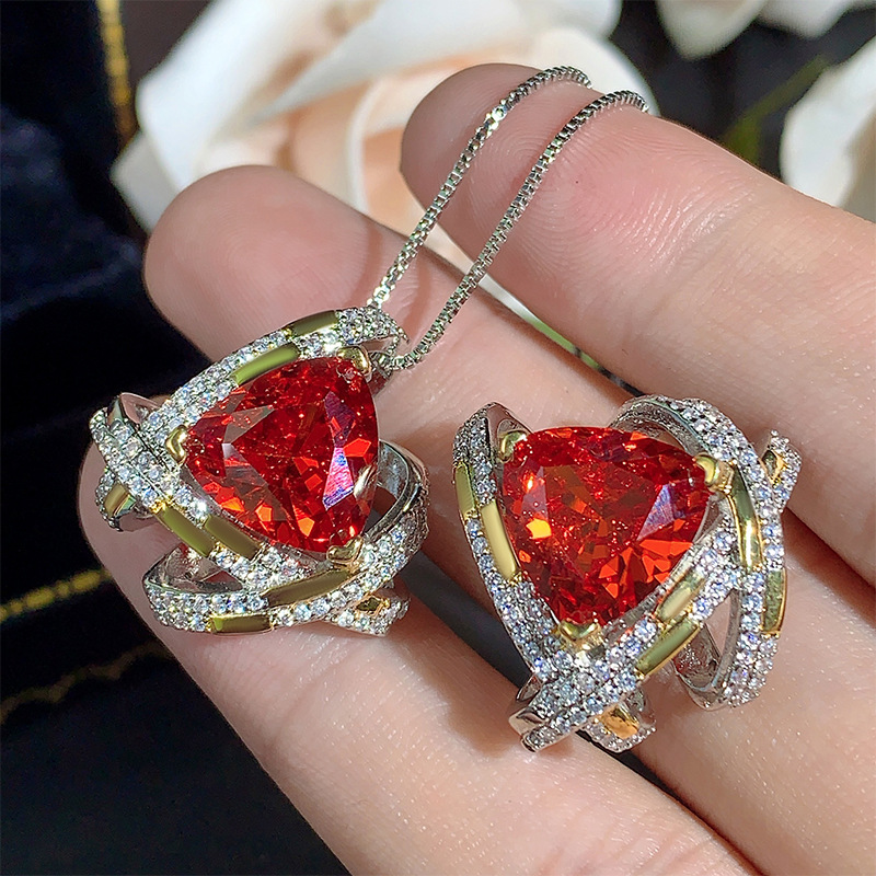 Set Necklace Earrings Jewelry Colorful Gemstone Red Corundum Fashion High-End Jewelry Light Luxury Women's Wholesale Goods